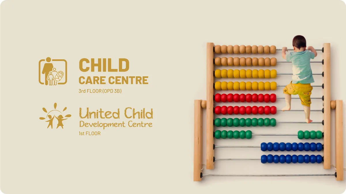 Comprehensive pediatric services including Nursery, Neonatology, Pediatrics, Pediatric Neurology, Pediatric Endocrinology, Child Critical Care (NICU, PICU), and Child Development Centre (CDC).